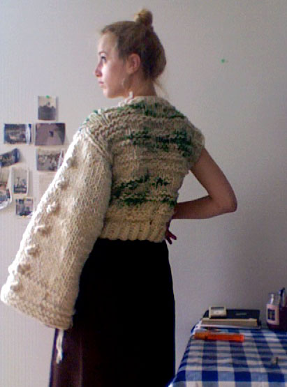The wrapped scarves had long fringe, sometimes with shells and stone sewn at the ends.